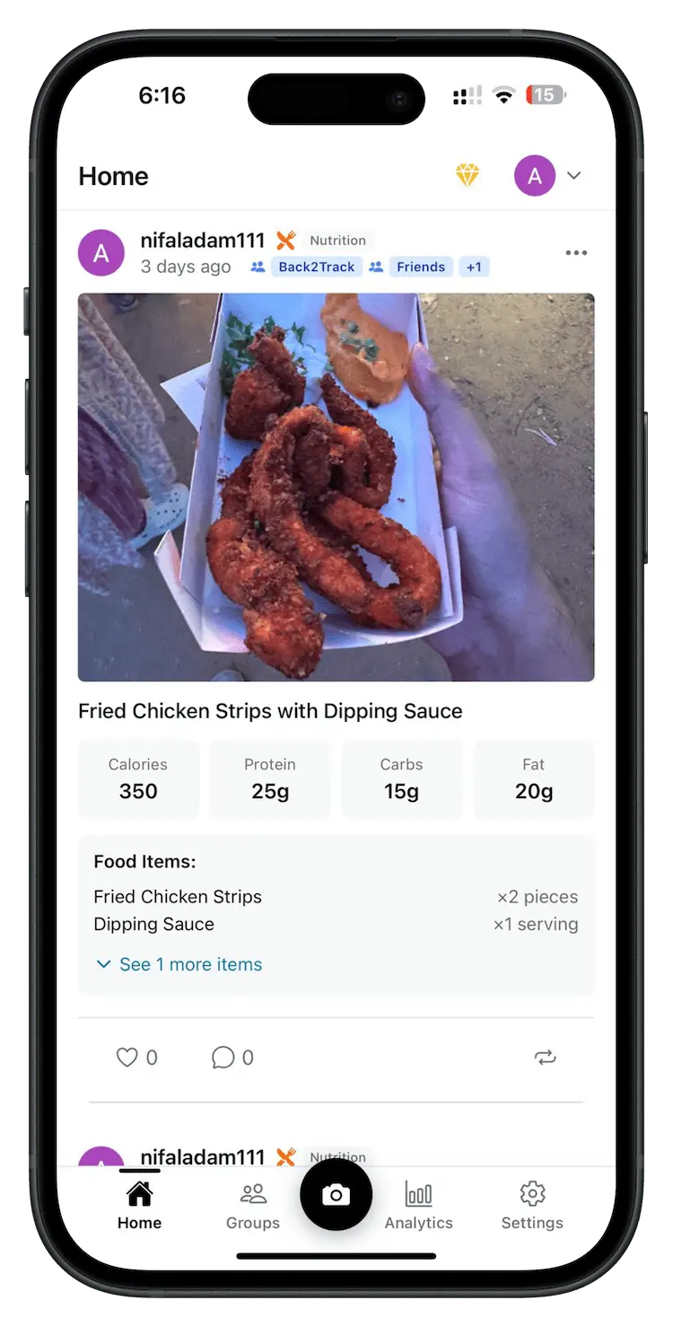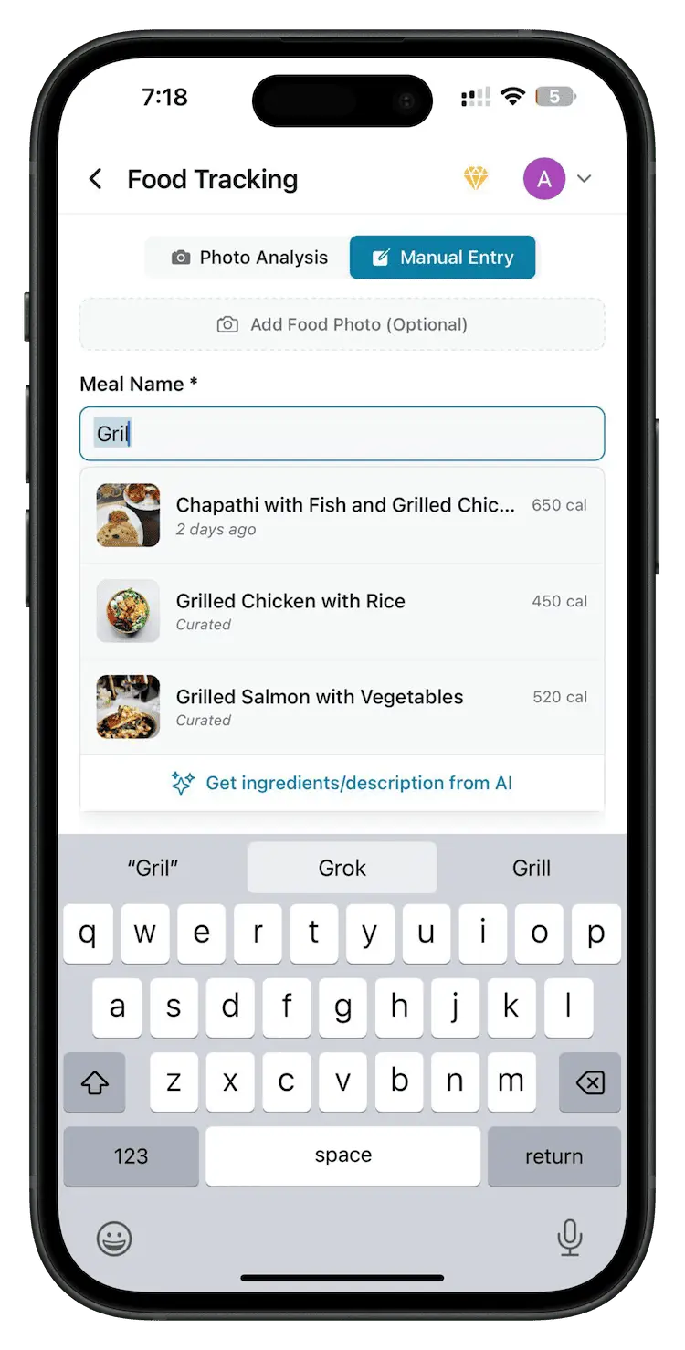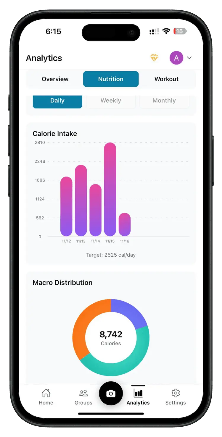 Simply snap a photo of your meal and let our advanced AI do the work. Instantly get accurate calorie counts and complete macro breakdowns without manual entry. Smart, fast, and effortless tracking.